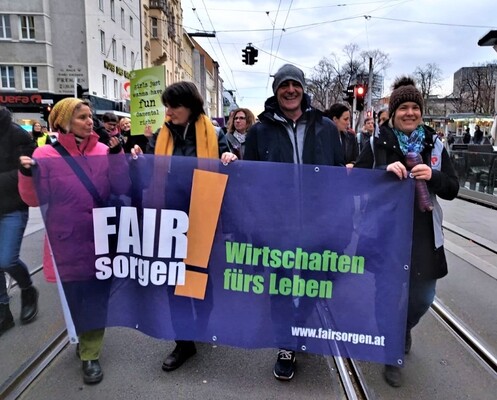 Fair!sorgen OÖ. Mehr für Care-Arbeit Wirtschaften fürs Leben Kundgebung 11.05., 11.05. Verlängerung der Rettungskette: Über 400 Menschen haben sich beteiligt. Gemeinsam knüpfen wir weiter. Studientag Pflege in Bewegung in der AK OÖ. Quintessenz: Essentielle Bedeutung von interdisziplinärem Zusammenhalt und beruflichem Selbstbewusstsein. "Wir sind die coolste Berufsgruppe." "Wir haben ein Talent, das die Welt braucht." Referent Markus Golla Demo Bündnis 8. März zum Internationalen Frauentag 2. Dezember Kundgebung und Rettungskette TPP-Statement mehr: Fair!sorgen OÖ. Mehr für Care-Arbeit
