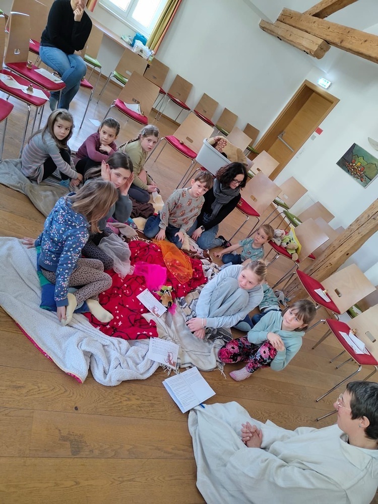 Kindergottesdienst im Pfarrsaal „Bei dir bin ich geborgen“.