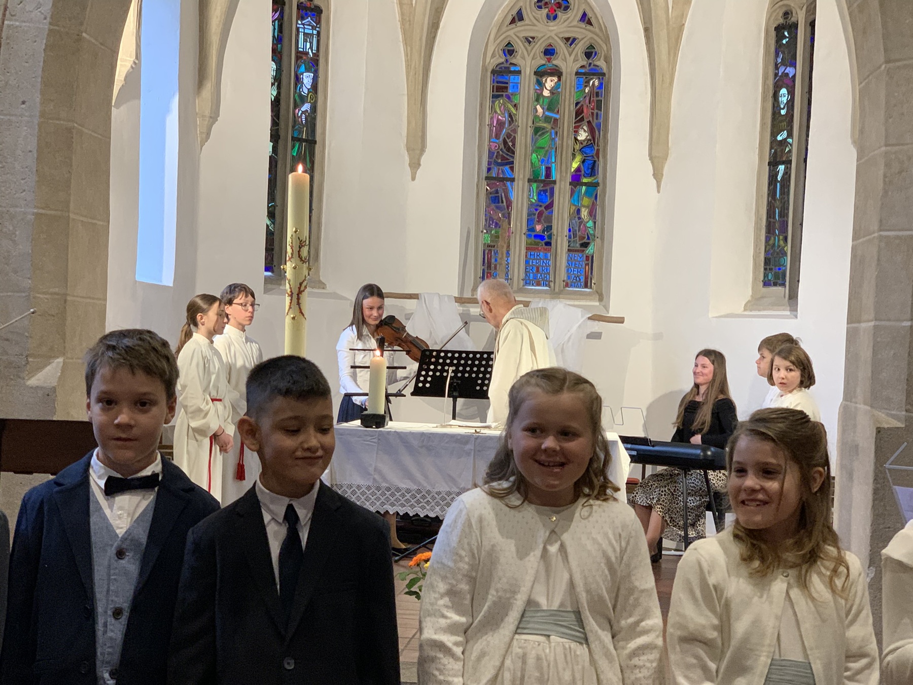 Ein großes Dankeschön gebührt allen, die diesen besonderen Tag vorbereitet haben, begonnen von der Religionslehrerin, den Tischmüttern, unserer Seelsorgerin Stefanie Hinterleitner, den Musiker:innen und Friedrich Lenhart, der gemeinsam mit den Kindern feierte.