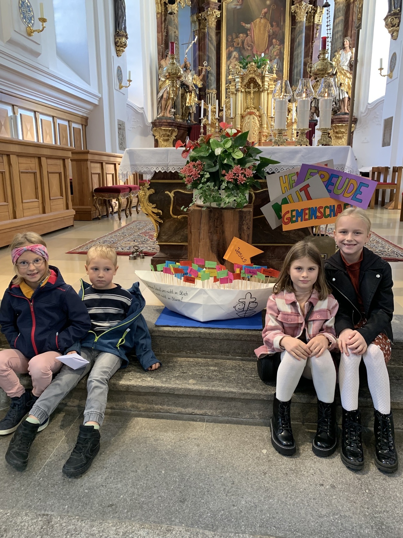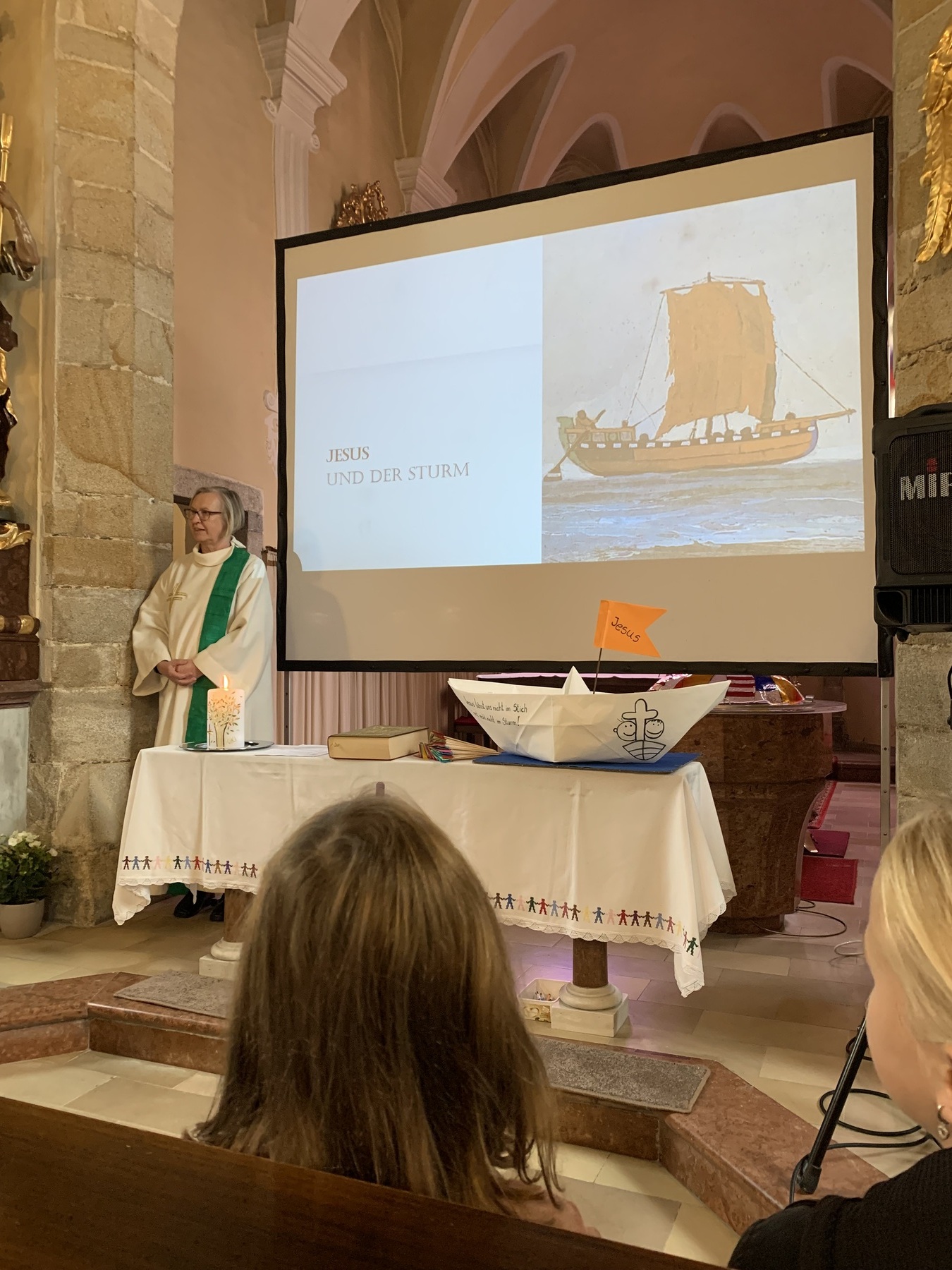 Wir haben uns sehr über die gefüllte Marienkirche gefreut und dass wir gemeinsam den Einzug mit unseren Papierschiffchen in die Pfarrkirche gestalten konnten.