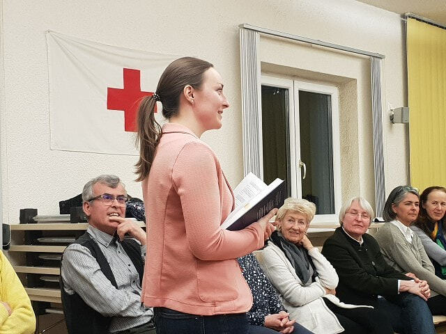 Maria Traunmüller, die Pastoralassistentin der Pfarre Eferding, gibt die inhaltliche Einführung zur Bibelstelle.