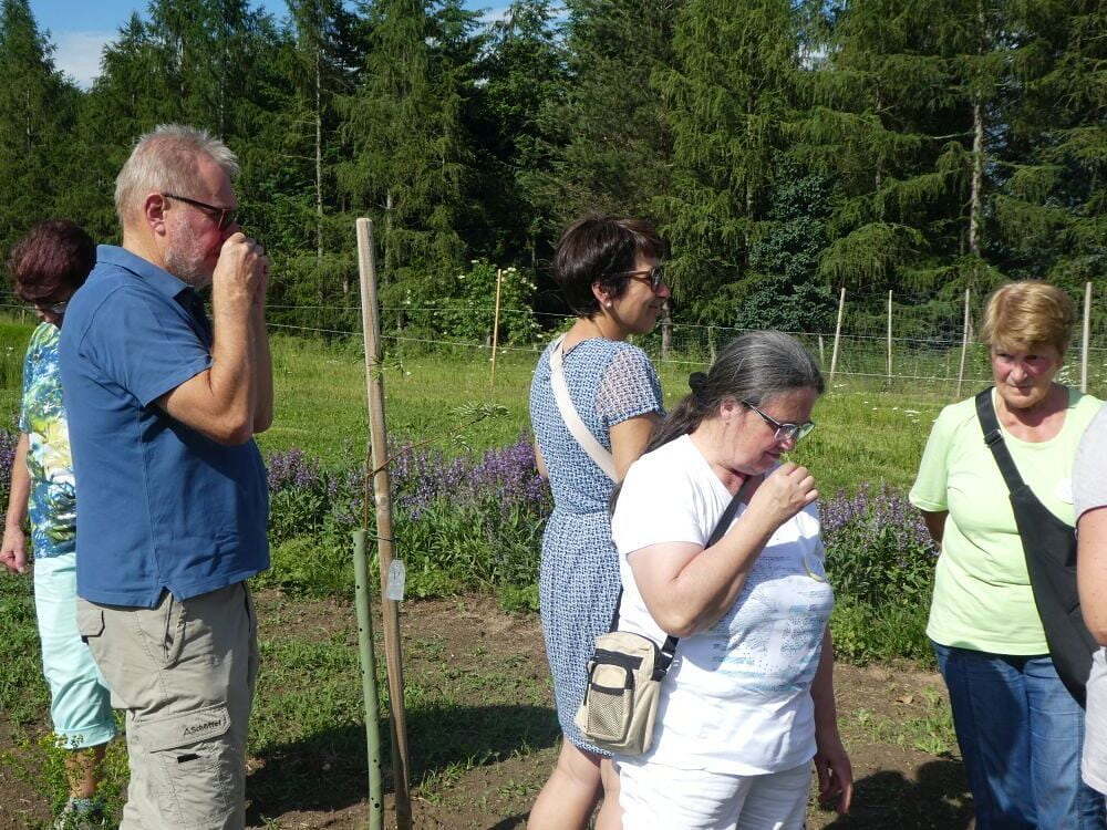 Nach einer kurzen Stärkung mit Vortrag eines Kräutermärchens erzählte Frau Mag. Erkentraud Leisch, wie sie und ihr Mann dieses Stückchen Grund erwarben und mit dem Kräuteranbau begannen. Eine Führung mit vielen Informationen zum Kräuteranbau und zur Verarbeitung beendete diesen interessanten, abwechslungsreichen und geselligen Nachmittag.
