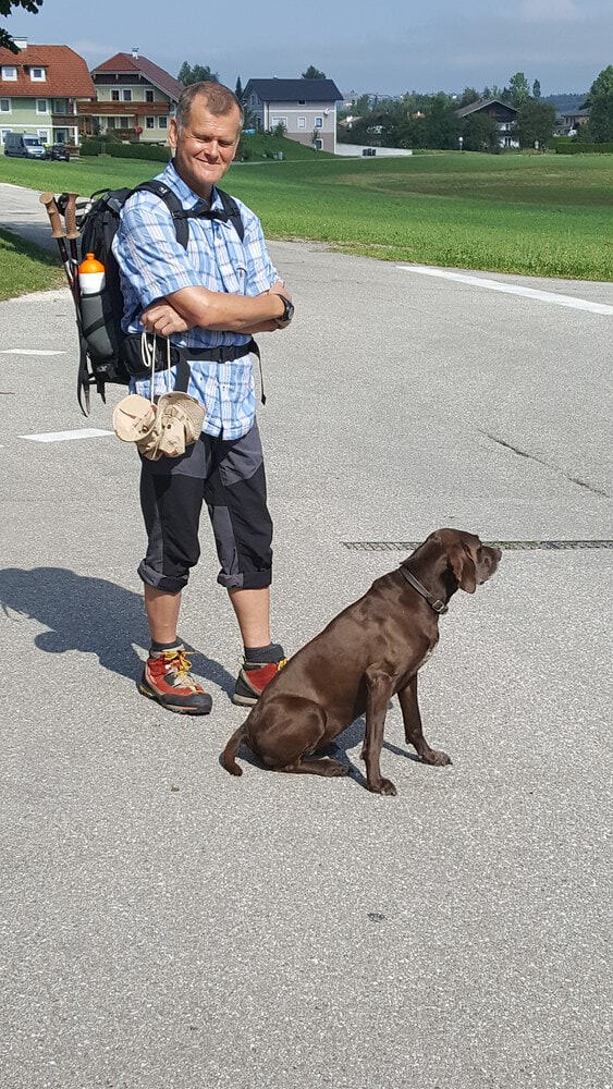 Motorisierter Begleiter, Rezeptionist, Gepäcksträger, verständnisvoller Helfer in Notsituationen - manche Pilgerin verliert auf dem Weg sogar die Schuhsohle - das alles schafft Max Neundlinger!