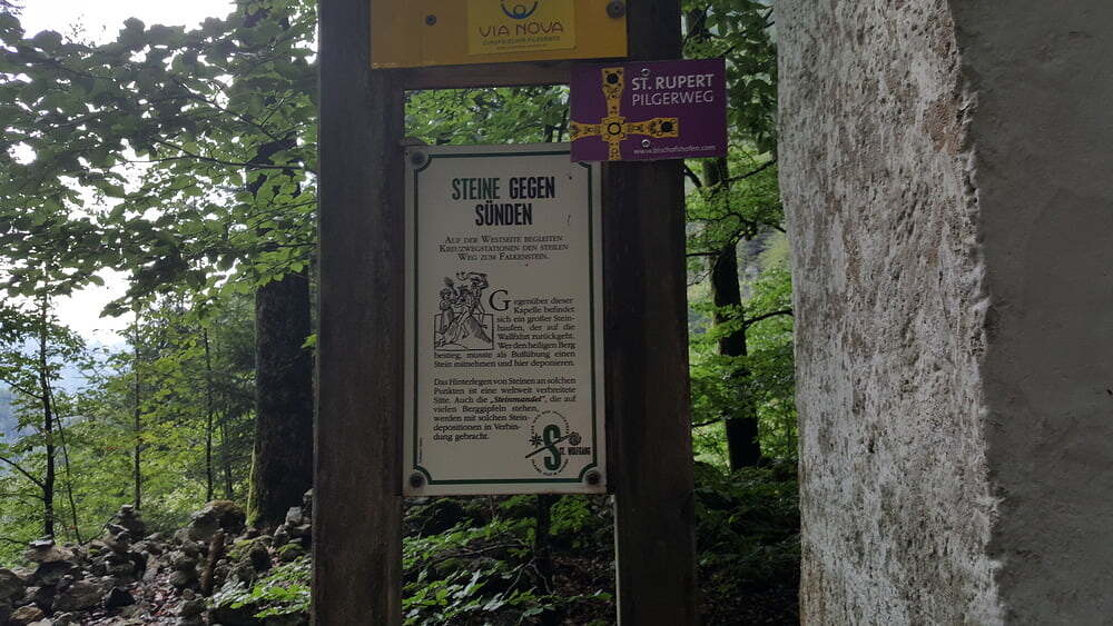 Der Weg führte am ersten Tag über den Falkenstein. In der Kapelle des Hl. Wolfgang gab uns Pater Fritz aus Pupping, der uns die 4 Tage begleitete, den Segen mit auf den Weg.