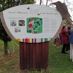 Im Schaugarten gibt es Interessantes zu lesen und auf Schaubeeten kann man viele von den Pflanzen besichtigen, aus denen dann in sehr schonendem Verfahren die wertvollen Öle kalt gepresst werden.