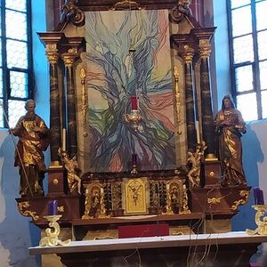 Gemeinsam besichtigten wir in der Pfarrkirche das Fastentuch und wurden über die Entstehung dieses Tuches informiert.