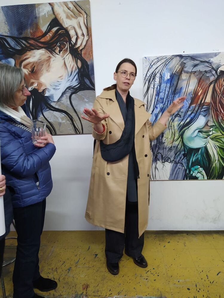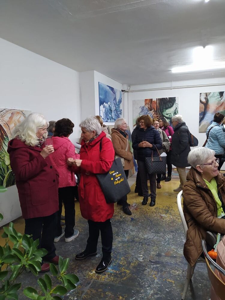 Anschließend besuchten wir das Atelier der Künstlerin. Dort erzählte uns Evelyn Kreinecker ihren persönlichen Zugang zum Malen und Zeichnen, und wir erhielten sehr interessante Einblicke in ihre vielseitigen Werke aus den verschiedenen Schaffensphasen.